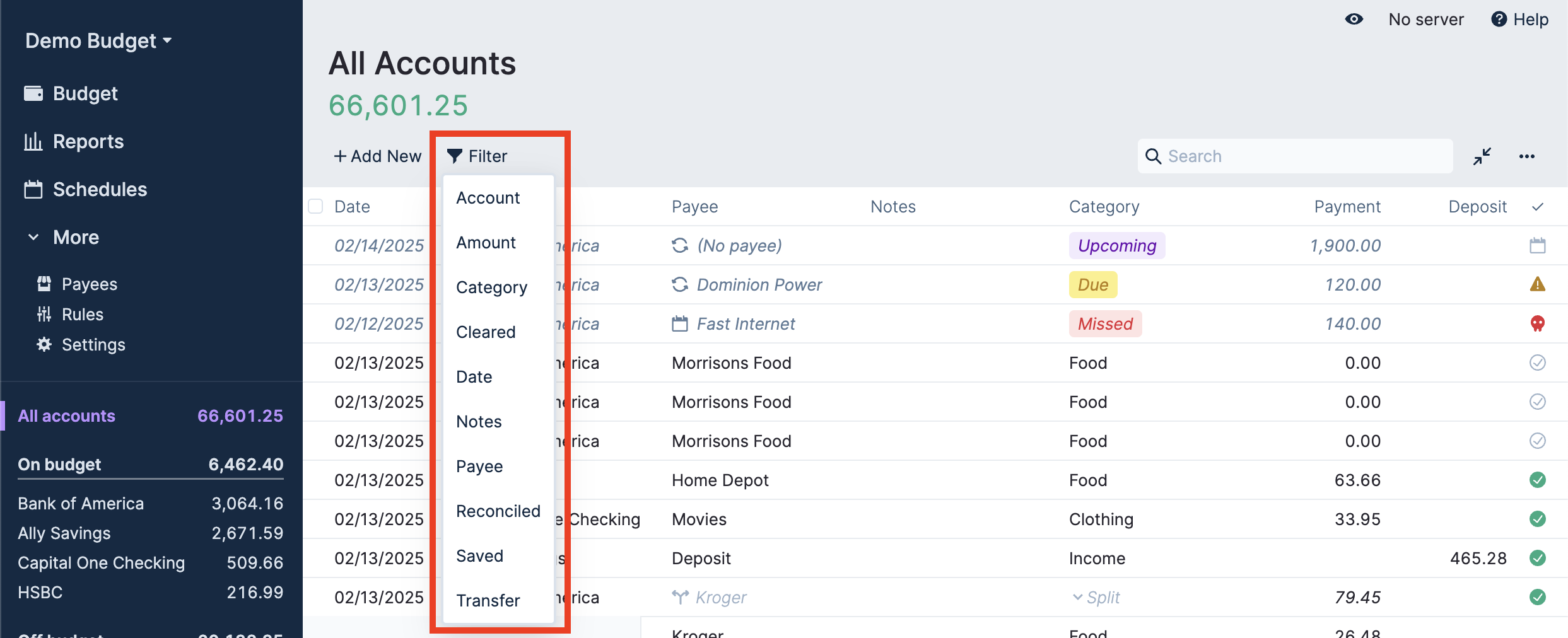 Filtering is a little known tool in Actual but is really quite a powerhouse. Filters go well beyond the simple Search tool and will allow you to create all sorts of useful transaction summaries. This will help you view various aspects of your spending, extract data for tax filing and so on.