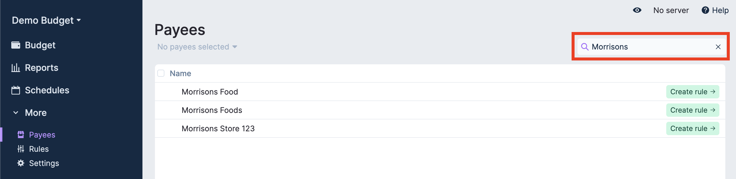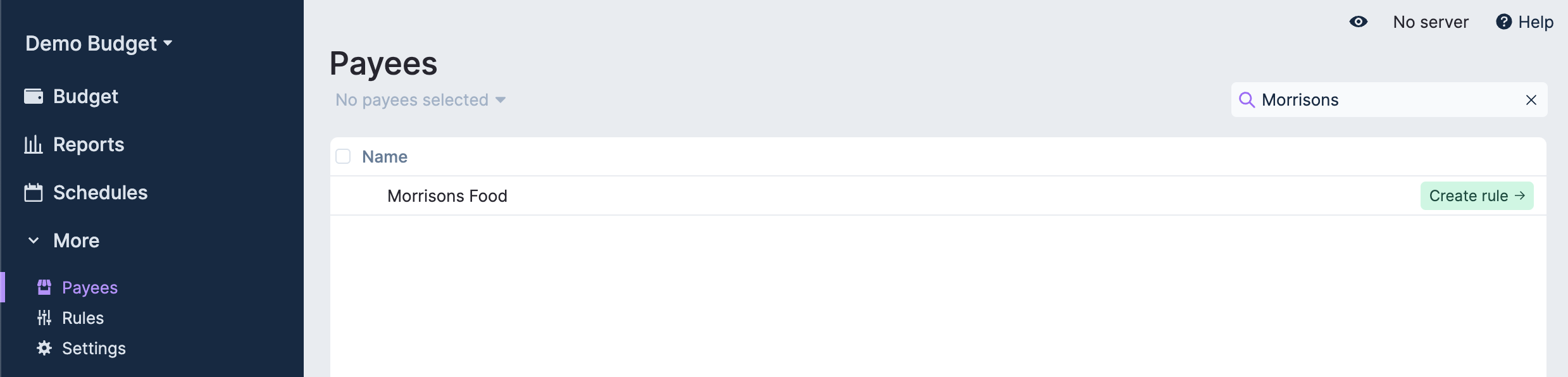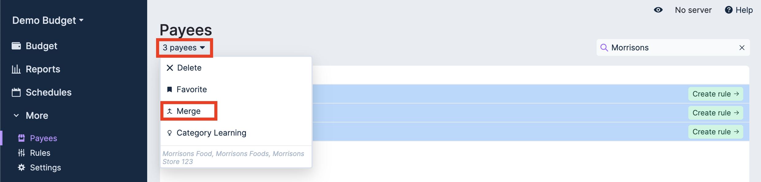 A powerful feature is merging payees. You may already have months worth of data and a lot of ugly Morrisons payees that all vary slightly. You want to merge all of these together into one payee.